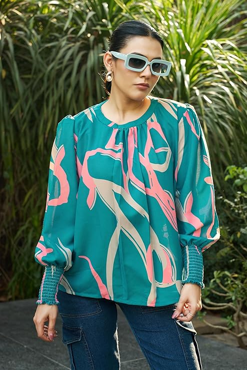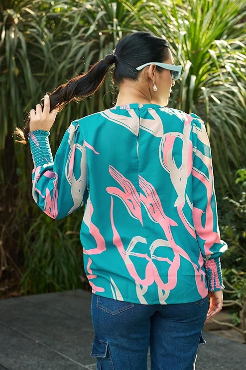 • Product Detail: This tops for women western wear features a comfortable rayon fabric, complete with long oversized sleeves, catering to your need for a versatile women’s shirt.