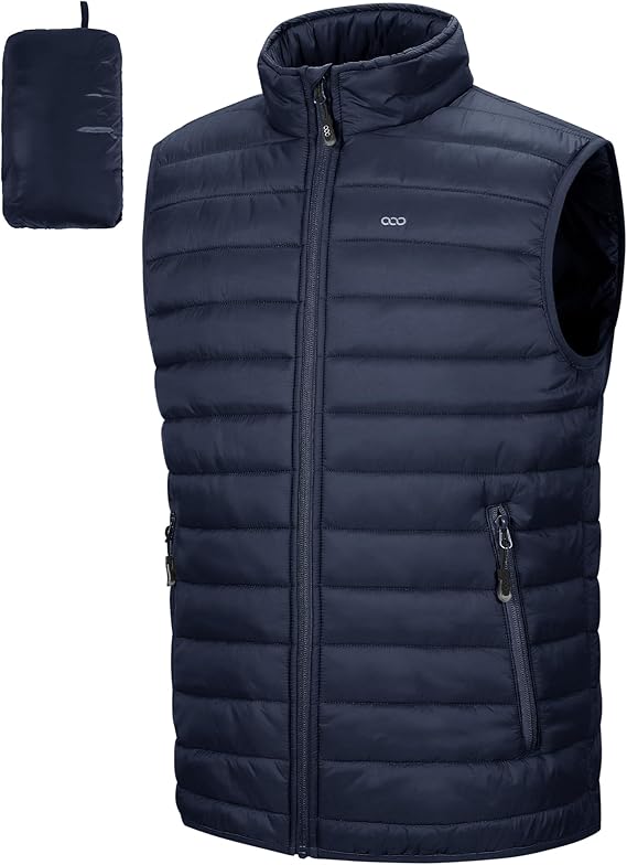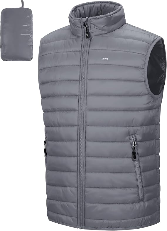 - LIGHTWEIGHT ZIP UP VEST OUTERWEAR WITH 5 POCKETS: This 33,000ft ultra-light weight padded vest for men is extremely lightweight and warm. 2 outer zip-up hand-warmer pockets and 1 inner chest zip pocket for storing your stuff safe and secure. 2 patch pockets are sized for your cell phone, wallet, gloves, etc.