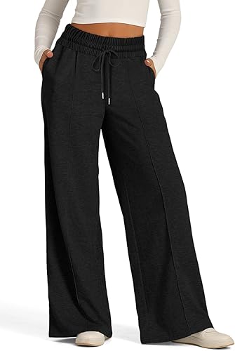 • Design: These casual jogger Sweatpants feature wide leg, loose fit, high waisted elastic waistband with a drawstring for a comfortable fit. The wide leg design allows for ease of movement during any activity.