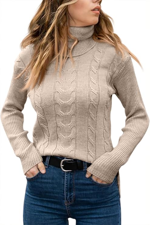 Women Turtleneck Casual Sweater Long Sleeve Soft Cable Knit Winter Pullover
